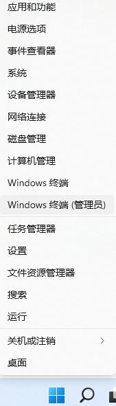 c右键点击「Windows 开始菜单图标」,点击「Windows 终端 (管理员)」